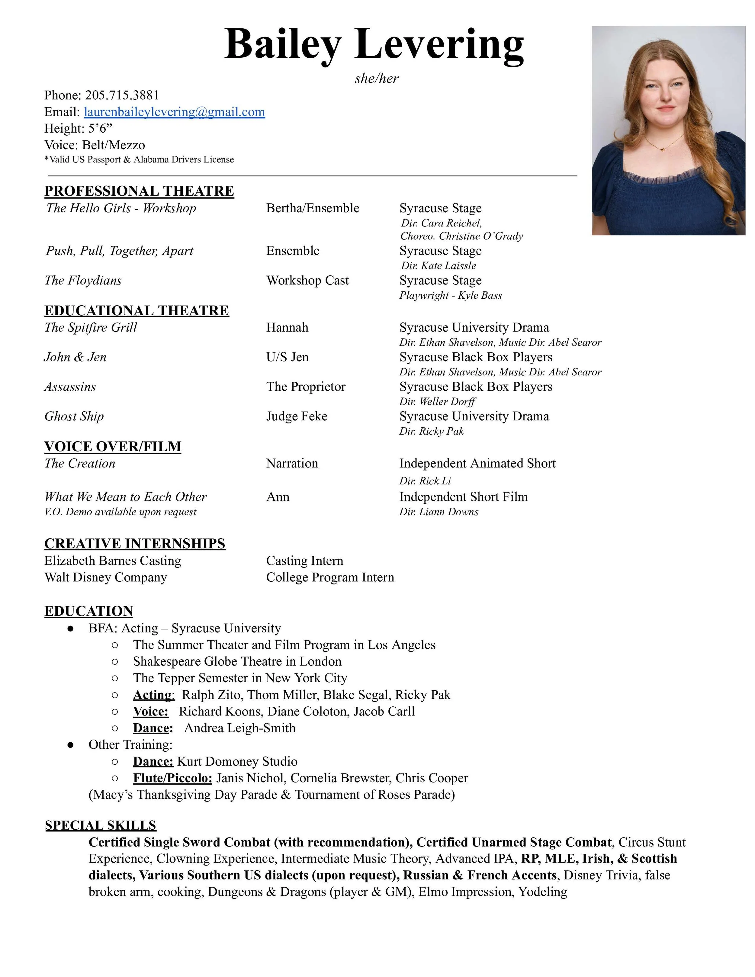 Click on the resume or headshot you’d like to download! HeadShots Resumes Theatrical Resume Non- Theatrical Resume